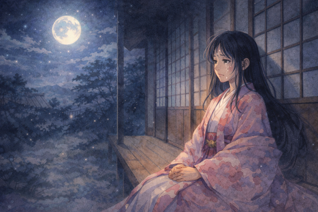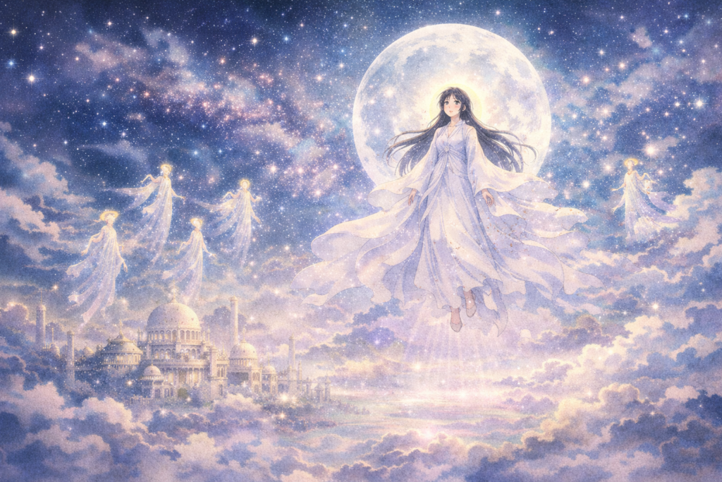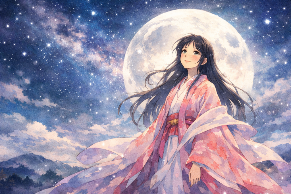 Raised by humble villagers, she grows rapidly into a woman of unmatched beauty. But behind her grace lies a cosmic secret—her origin is tied to the Moon, and her destiny is far from human.