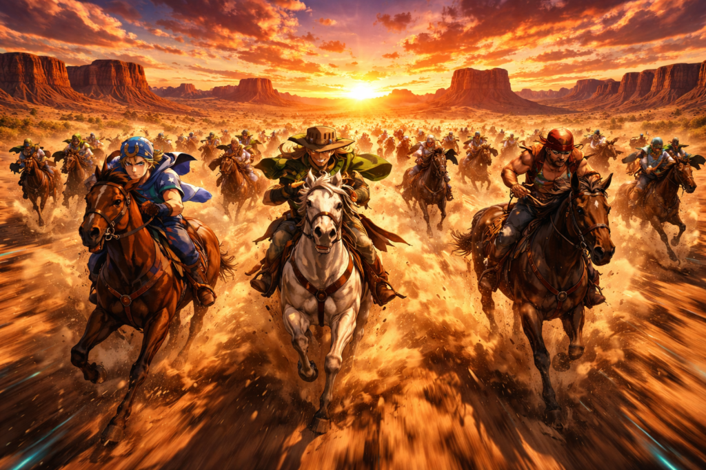 The JoJo’s Bizarre Adventure world is cooking up one of its biggest anime releases yet. Scheduled to arrive on Netflix on March 19, 2026 (announced in real life), Steel Ball Run is finally here to whet our collective appetites by bringing Part 7 of Hirohiko Araki’s cult favourite manga to colourful life with killer animation, a dynamite cast and high-rolling Wild West action.