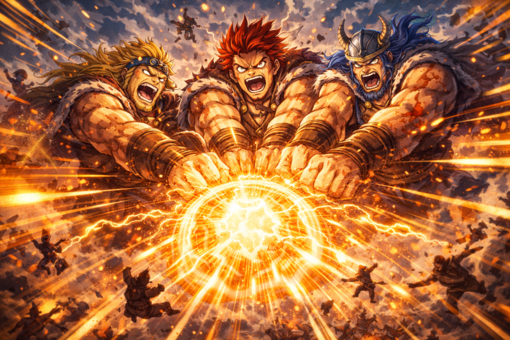 True to the chapter’s title, the future of Elbaf fights back. Jard, Goldberg, and Road unleash “Roaring Nation,” a devastating combined attack reminiscent of ancient giant legends.