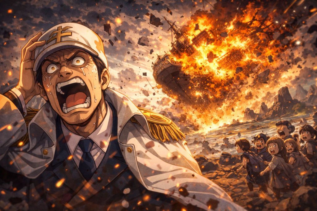 World Government official Somars delivers the chapter’s cruel irony. In a moment of fear, he destroys his own evacuation ship, trapping both soldiers and children on Elbaf.