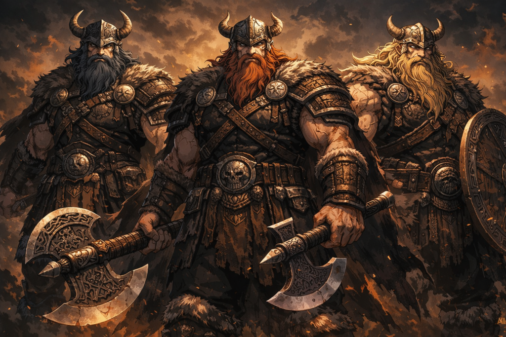 - Heavy Norse-inspired armor and weapons