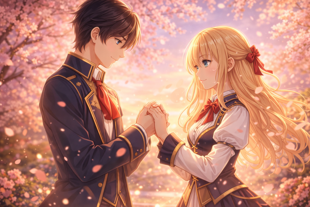 This series takes a new spin on the standard reincarnation story: Rather than vanquishing enemies or saving the world, the heroine’s goal is to change her destiny and find romance. Which places it in the unique position of being part of the ever-popular romantic isekai genre.