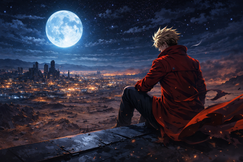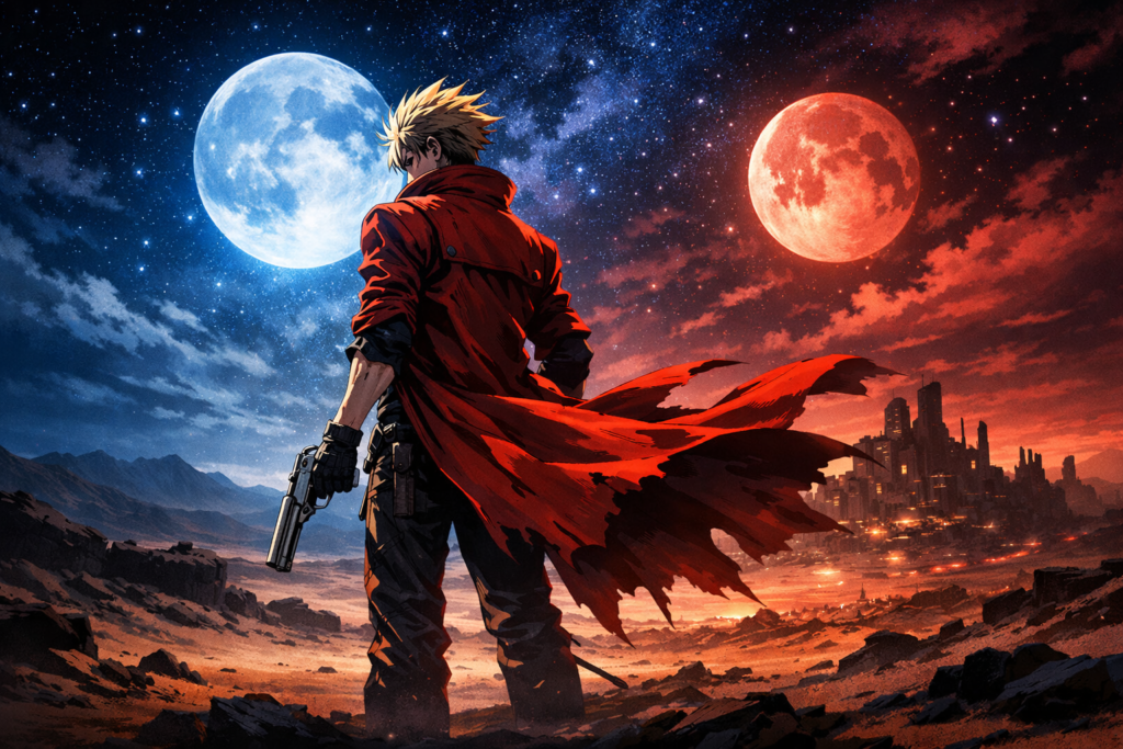 Vash the Stampede, the unforgettable “Humanoid Typhoon” whose pacifist heart hides a legacy of pain and resilience.