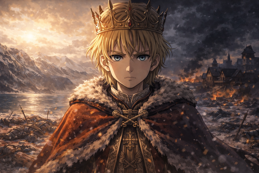 In the shocking finale, Askeladd reveals his true identity as Lucius Artorius Castus and kills King Sweyn himself. This act saves Wales but seals Askeladd‘s fate. He is ultimately killed by Prince Canute, ensuring Canute’s rise to power.